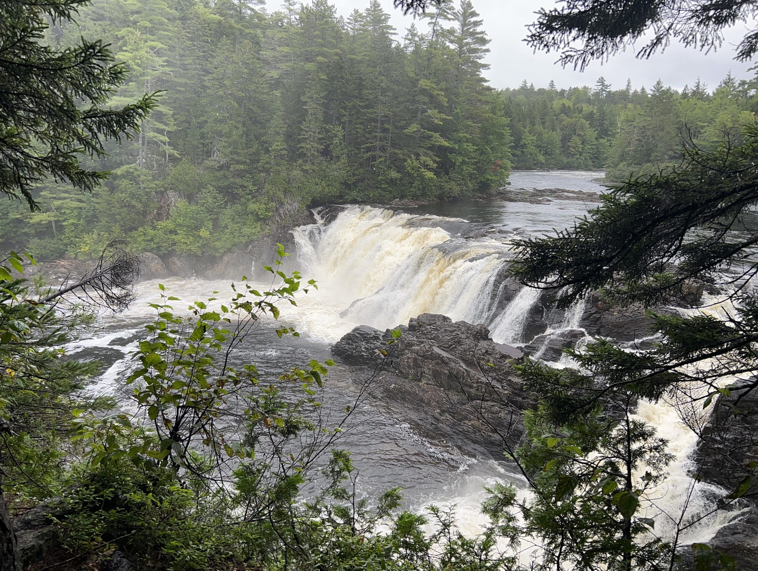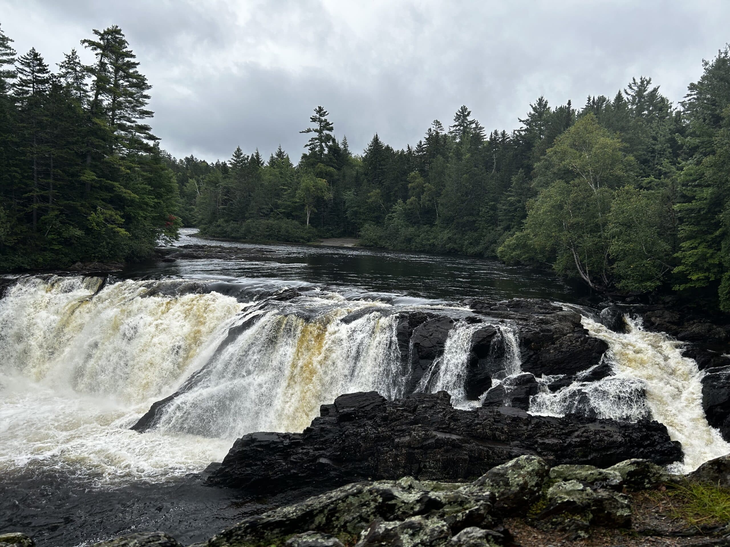 Grand Falls is an amazing waterfall and area unknown to many. These horseshoe falls span 100 feet across and are 40 feet tall, offering an impressive and scenic view anytime of year. The falls are just upstream from the rafting put-in for all whitewater trips on the Dead River.